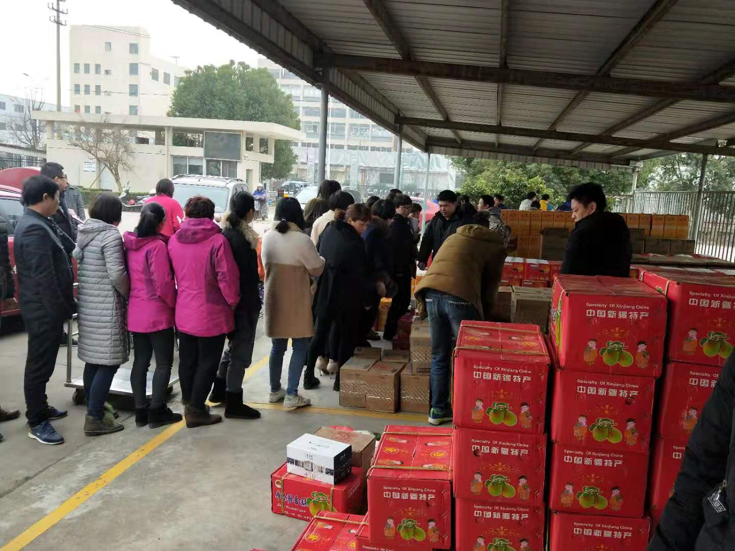 公司工會(huì)的成員們一早就開始對(duì)本次發(fā)放的部門進(jìn)行區(qū)分,指引師傅們卸貨、碼貨,進(jìn)行貨物清點(diǎn)。福利發(fā)放現(xiàn)場一片喜氣洋洋,不論大車小車,載著公司的祝福,駛往家的方向......